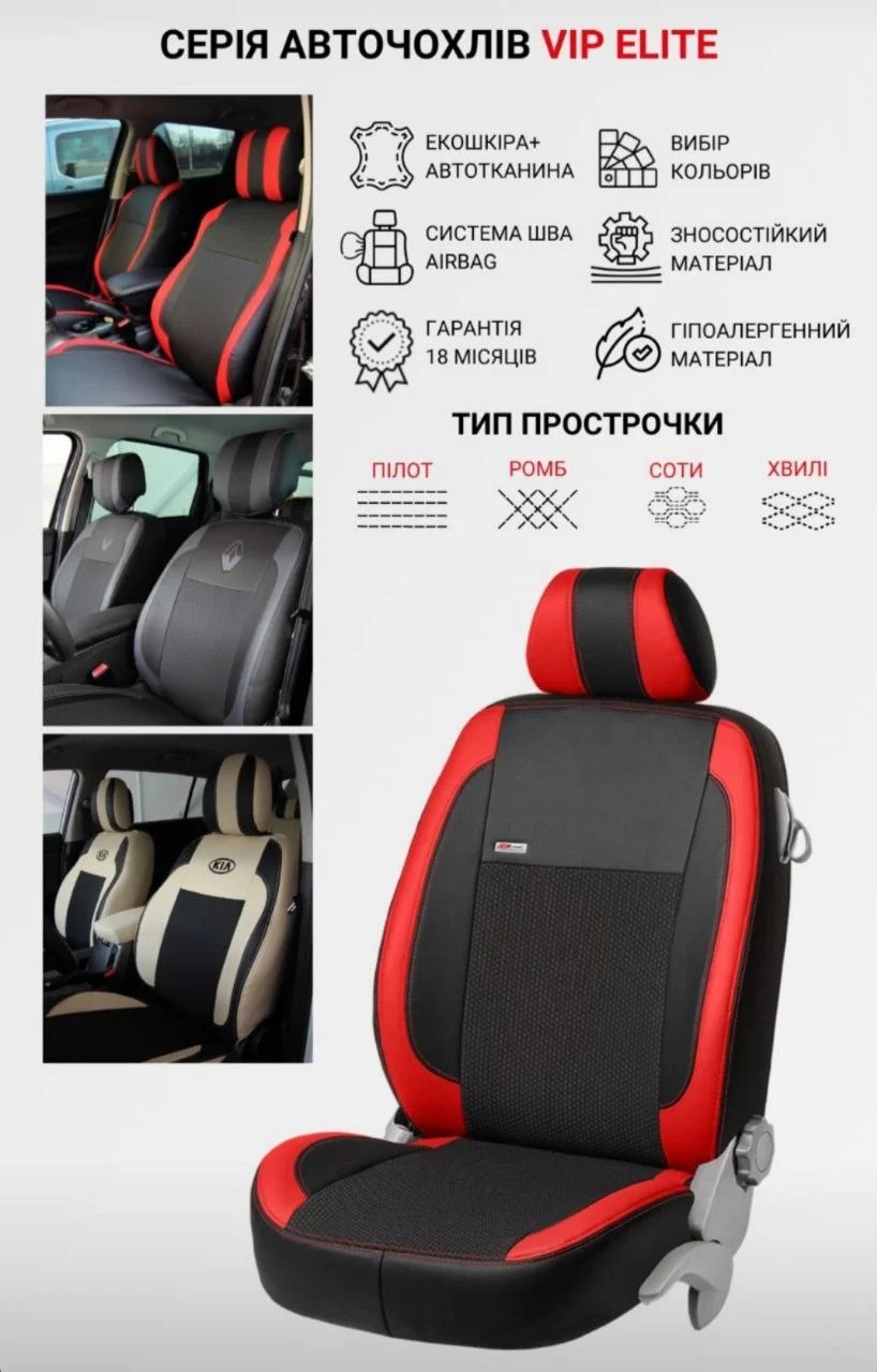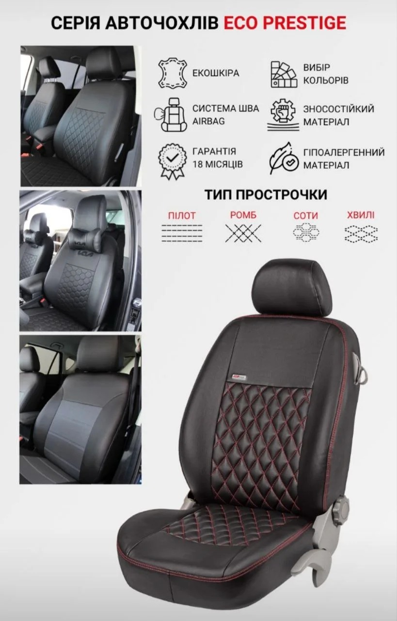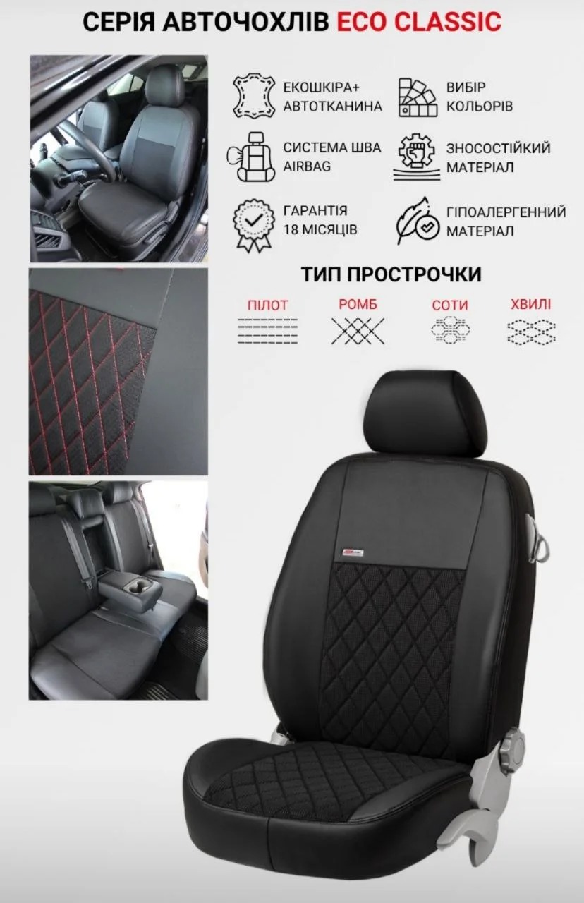 високу якість пошиття і точність крою, повторює оригінальну форму сидінь машини
