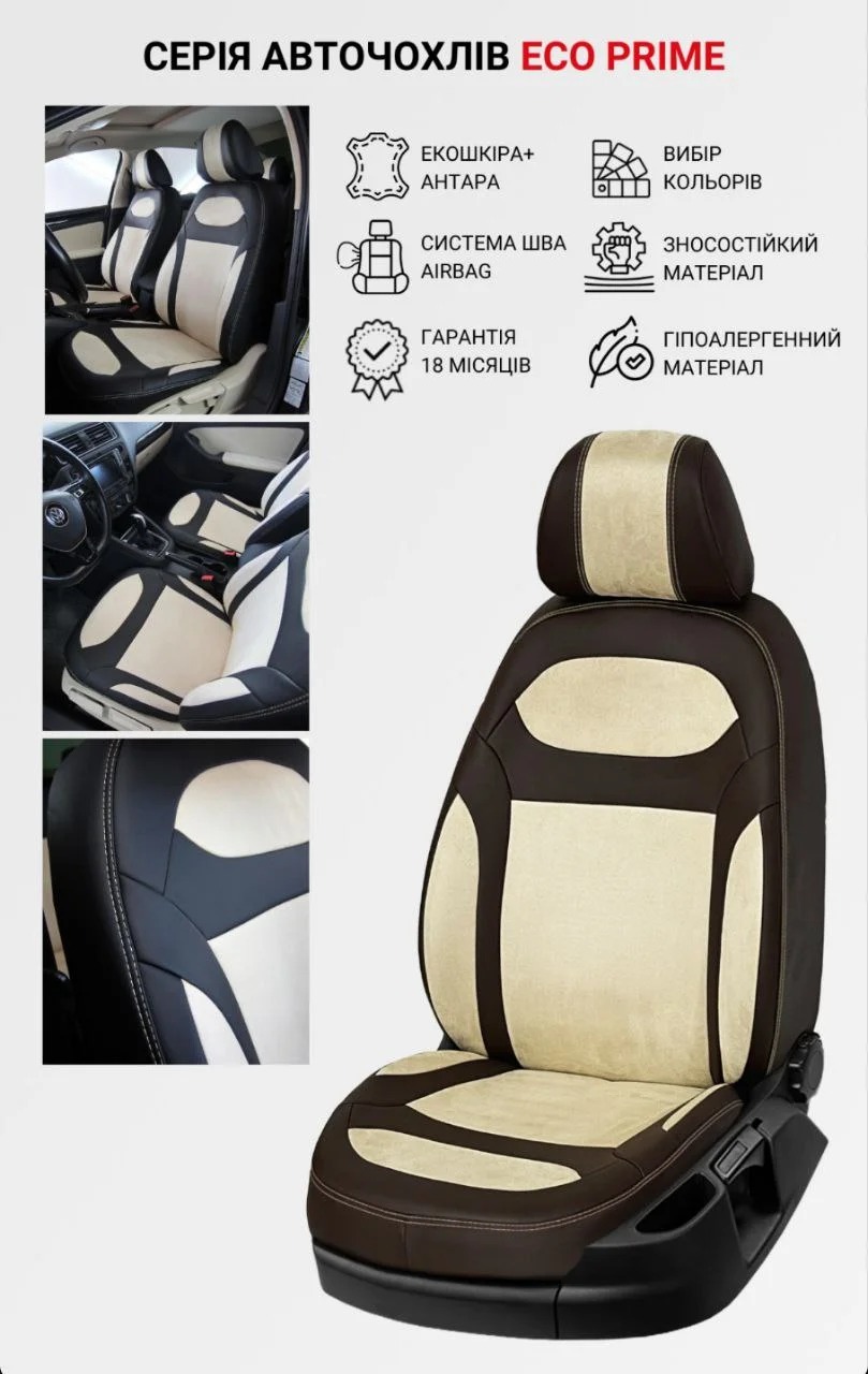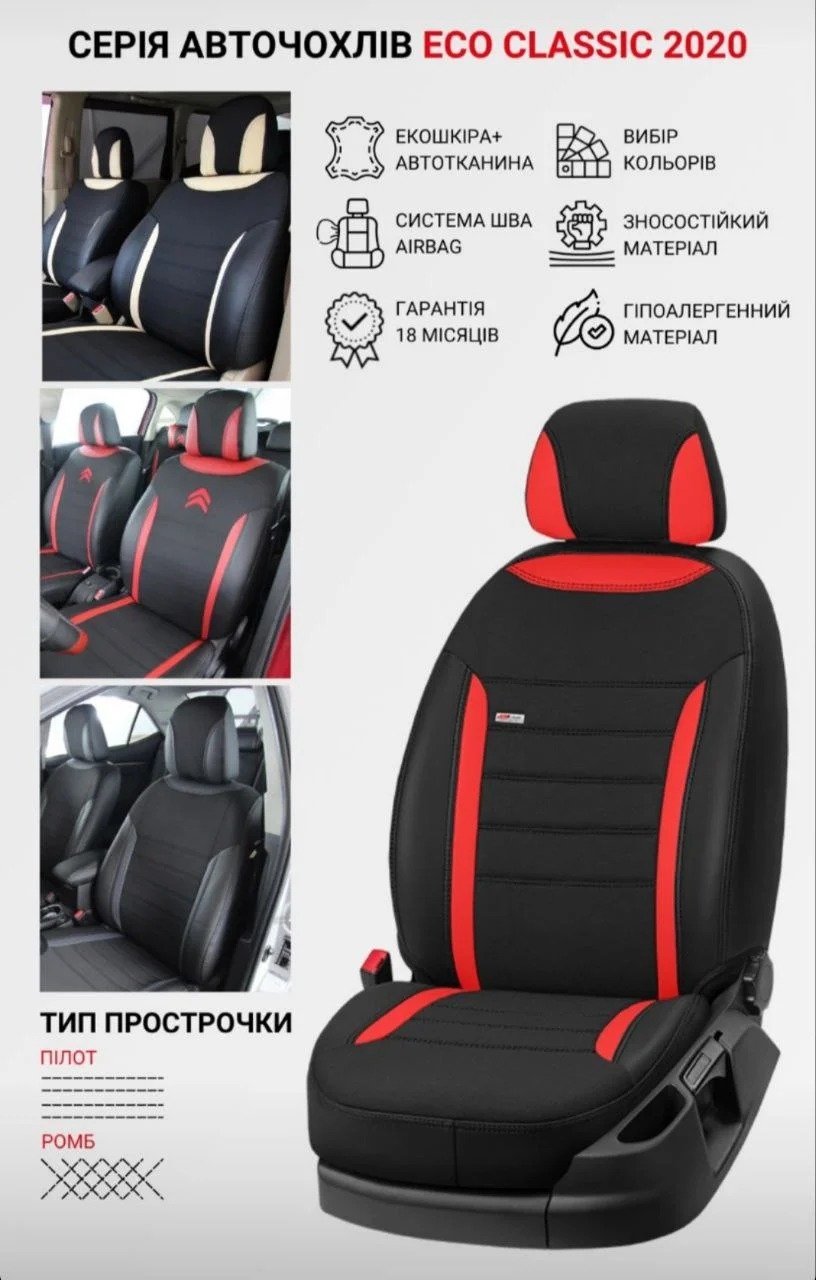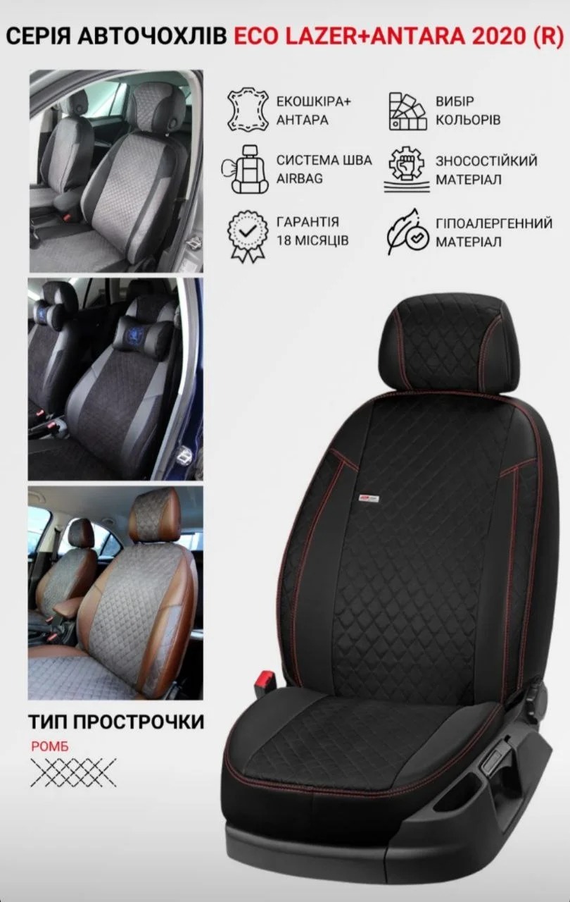 високу якість пошиття і точність крою, повторює оригінальну форму сидінь машини